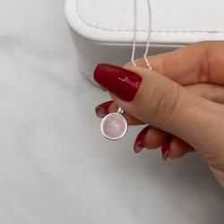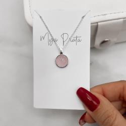 Colar pingente quartzo rosa 12mm corrente cadeado 45cm | Mya Prata