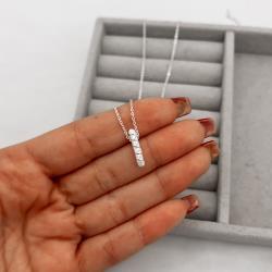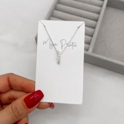 Colar palito trabalhado cravejado 15mm corrente cadeado 45cm | Mya Prata