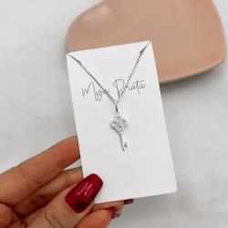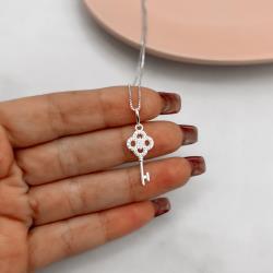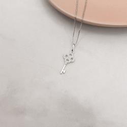 Colar pingente chave cravejada 20mm 45cm | Mya Prata