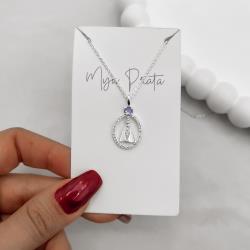 Colar medalha Nsa. Sra. Aparecida vazada cravejada zircônia lilás 20mm corrente cadeadinho 45cm | Mya Prata