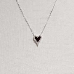 Descrição: Colar coração pedra ônix com cravejado 11mm corrente cadeado 45+5cm fabricado(a) em prata