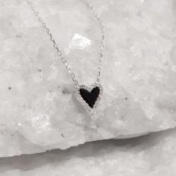 Colar coração pedra ônix com cravejado 11mm corrente cadeado 45+5cm | Mya Prata