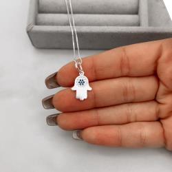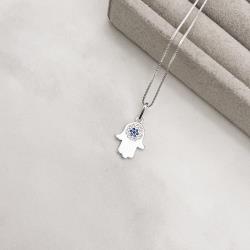 Colar pingente mão cravejada detalhe zircônia azul 14mm 45cm | Mya Prata