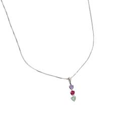 Colar pingente 3 zircônias coloridas 12mm 45cm | Mya Prata