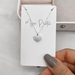 Colar coração rendado trabalhado 12mm 45cm | Mya Prata