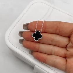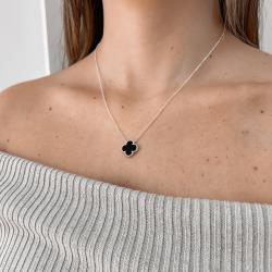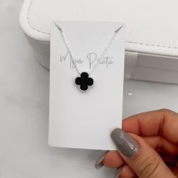 Colar trevo pedra ônix com bolinhas 14mm corrente cadeado 45+5cm | Mya Prata