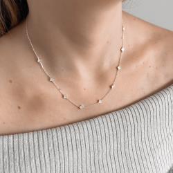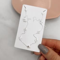 Colar entremeio trevos madrepérola e vinco 5mm corrente cadeado 45+5cm | Mya Prata