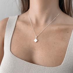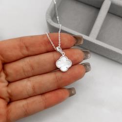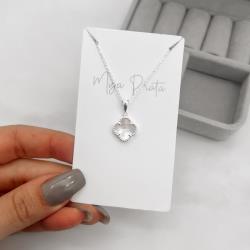 Colar pingente trevo madrepérola com bolinhas 12mm corrente cadeadinho 45cm | Mya Prata