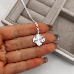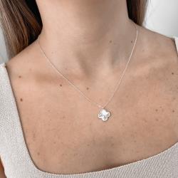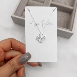 Colar pingente trevo vinco com bolinhas 14mm corrente cadeado 45+5cm | Mya Prata