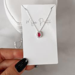 Colar zircônia oval cereja com cravejado 10mm corrente cadeadinho 45cm | Mya Prata