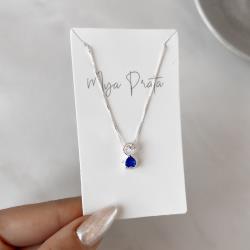 Colar menino com zircônia coração azul bic 12mm 45cm | Mya Prata