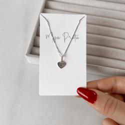 Colar pingente coração letra U 45cm | Mya Prata