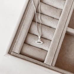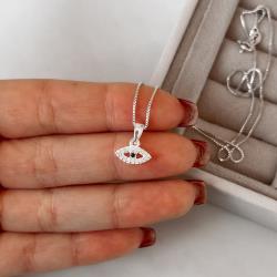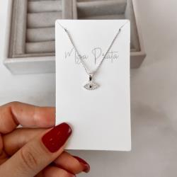 Colar pingente olho cravejado detalhe zircônia ônix 11mm 40cm | Mya Prata