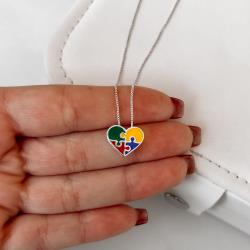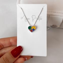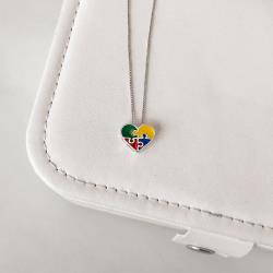 Colar coração símbolo autismo 14mm resina 45cm | Mya Prata