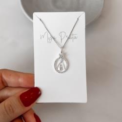 Colar pingente medalha Nsa. Sra. Aparecida borda cravejada 19mm 45cm | Mya Prata
