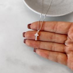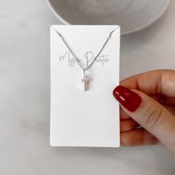 Colar pingente letra T cravejada 9mm 45cm | Mya Prata