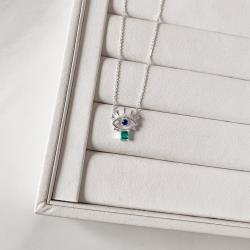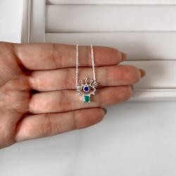 Colar olho com zircônias azul e acqua 17mm corrente cadeado 40cm com alongadora | Mya Prata