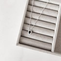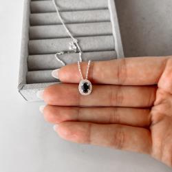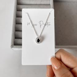 Colar zircônia oval ônix com cravejado 11mm corrente cadeadinho 45cm | Mya Prata
