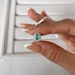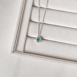 Colar zircônia oval turquesa com cravejado 11mm corrente cadeadinho 45cm | Mya Prata
