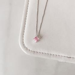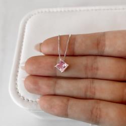 Colar zircônia losango rosa 10mm 45cm