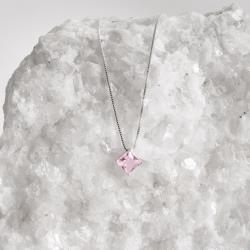 Colar zircônia losango rosa 10mm 45cm | Mya Prata