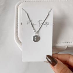 Colar pingente medalha letra F cravejada 15mm 45cm | Mya Prata