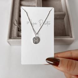 Colar pingente medalha letra H cravejada 15mm 45cm | Mya Prata