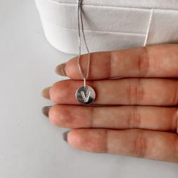Colar pingente medalha letra V cravejada 15mm 45cm | Mya Prata