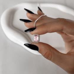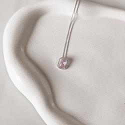 Colar zircônia retangular rosa com cravejado 13mm 45cm | Mya Prata