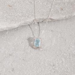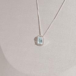 Colar zircônia retangular azul claro com cravejado 13mm 45cm | Mya Prata