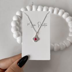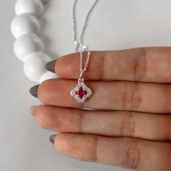Colar pingente trevo vazado cravejado com zircônia cereja 11mm corrente cadeadinho 45cm | Mya Prata