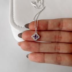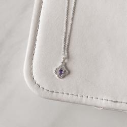 Colar pingente trevo vazado cravejado com zircônia lilás 11mm corrente cadeadinho 45cm | Mya Prata