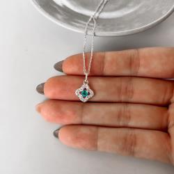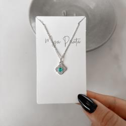 Colar pingente trevo vazado cravejado com zircônia acqua 11mm corrente cadeadinho 45cm | Mya Prata