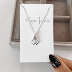 Colar Nsa. Sra. Aparecida vazada detalhe cravejado azul 17mm corrente cadeadinho 45cm | Mya Prata