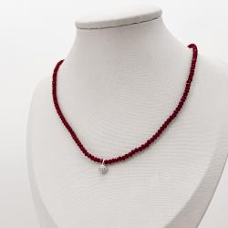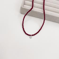 Colar cristal marsala 3mm pingente coração cravejado 6mm 40+5cm | Mya Prata
