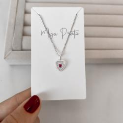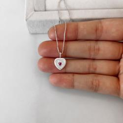 Colar pingente coração cravejado detalhe zircônia coração rosa 11mm 45cm | Mya Prata