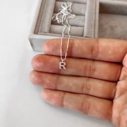 Colar pingente letra R cravejada 6mm 40cm | Mya Prata