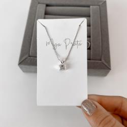 Colar pingente zircônia quadrada 8mm 45cm | Mya Prata