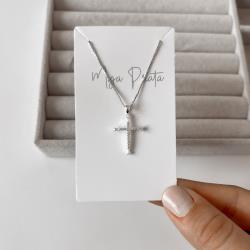 Colar pingente cruz toda cravejada 19mm 45cm | Mya Prata