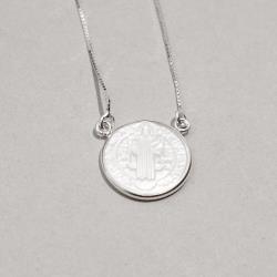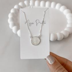 Colar entremeio medalha São Bento madrepérola 16mm 45cm | Mya Prata