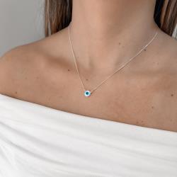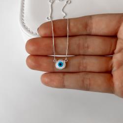 Colar olho grego redondo madrepérola 9mm 40+3cm