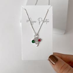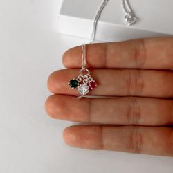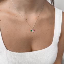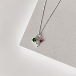 Colar entremeio círculo pingentes trevo cravejado, zircônias cereja e esmeralda v12 45cm | Mya Prata