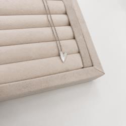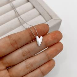 Colar pingente coração alongado de lado riscado 12mm 45cm | Mya Prata