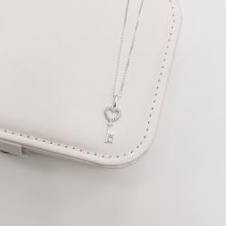Colar pingente chave coração vazado cravejado 19mm 45cm | Mya Prata