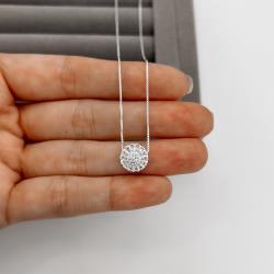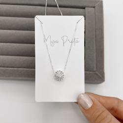 Colar botão cravejado trabalhado 10mm 45cm | Mya Prata