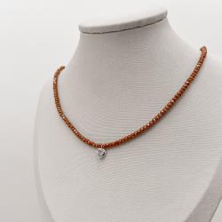 Choker cristal terracota 3mm pingente zircônia coração cristal 6mm 40+5cm