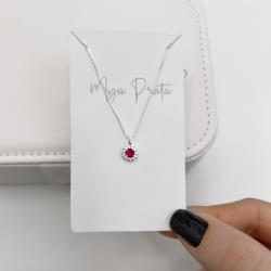 Colar pingente zircônia redonda cereja detalhe torcido 7mm 40cm | Mya Prata
