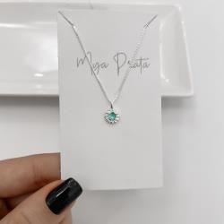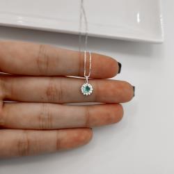 Colar pingente zircônia redonda acqua detalhe torcido 7mm 40cm | Mya Prata