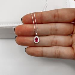 Colar pingente zircônia oval cereja detalhe torcido 10mm 45cm | Mya Prata