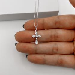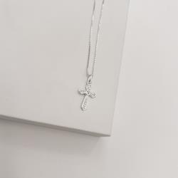Colar pingente cruz cravejada 16mm 45cm | Mya Prata